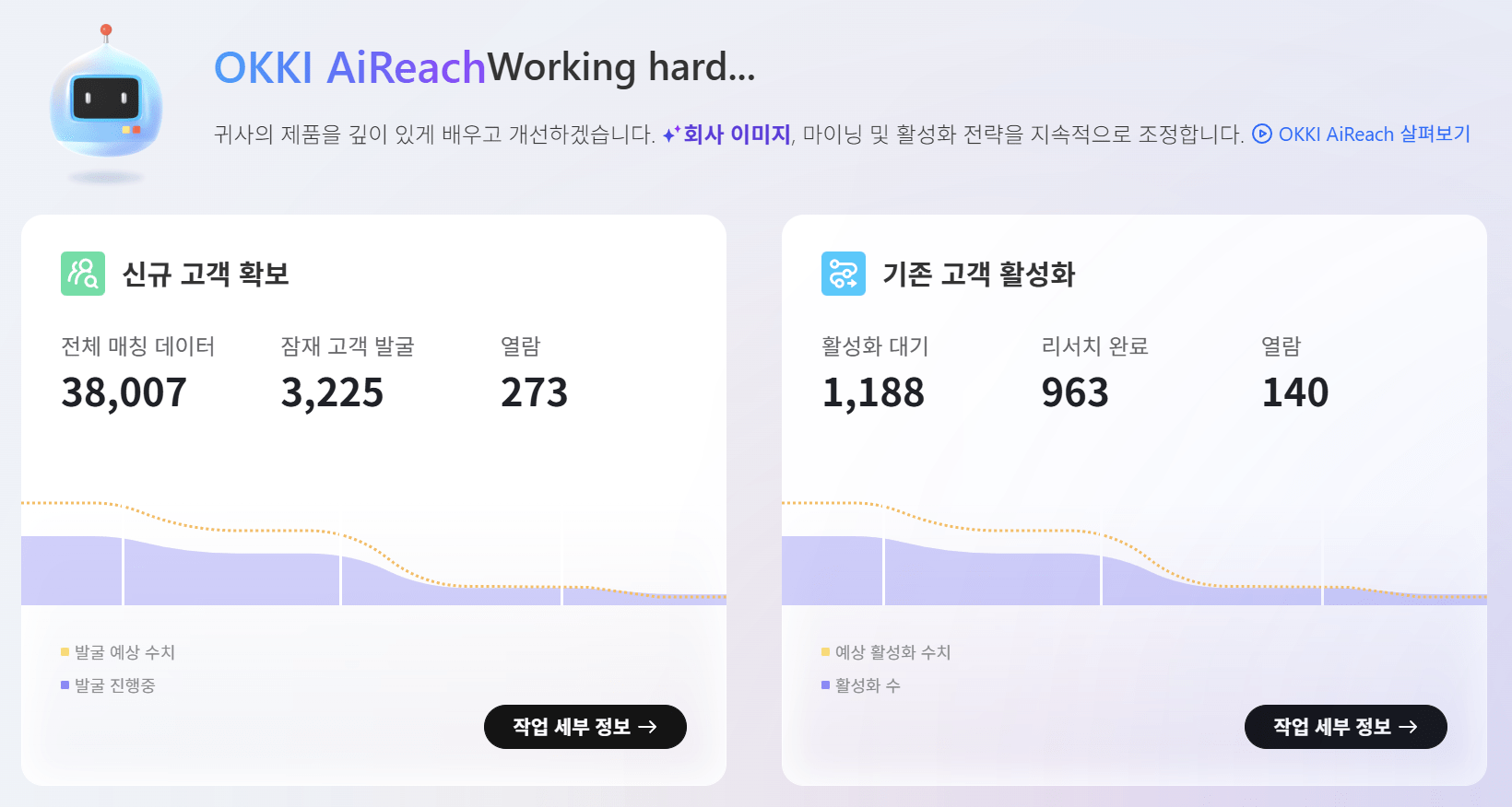 OKKI AiReach는 190개국, 4800만 활성 B2B바이어를 보유한 알리바바의 글로벌 무역 데이터를 귀하의 비즈니스와 정밀하게 매칭하여 해외 유망 바이어를 발굴해드립니다.